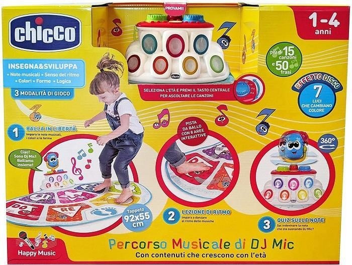 Il percorso musicale DJ Mic di Chicco è un gioco interattivo che permette ai bambini di creare melodie mentre esplorano il percorso. Con effetti sonori e luci colorate, stimola la creatività e incoraggia lo sviluppo delle capacità motorie e cognitive. Adatto per bambini dai 12 mesi in su.