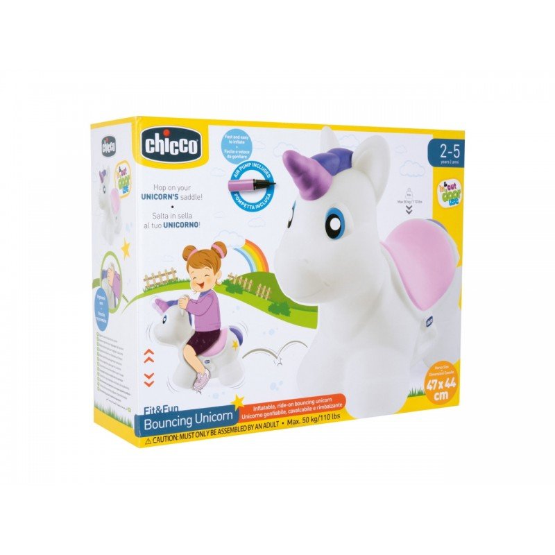 Il Chicco Gioco Unicorno Gonfiabile è un cavalcabile per bambini dai 2 ai 5 anni, progettato per sviluppare coordinazione ed equilibrio. Dotato di sella ergonomica e orecchie per una presa sicura, include una pompa per un facile gonfiaggio. Adatto per uso interno ed esterno.