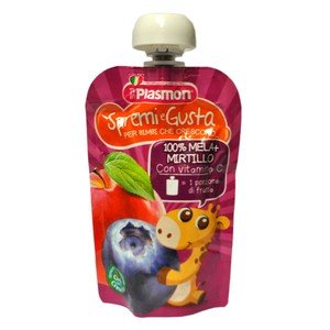 Snack Plasmon “Spremi e Gusta” Mela e Mirtillo, merenda sana 100% frutta, per bambini dai 6 mesi.